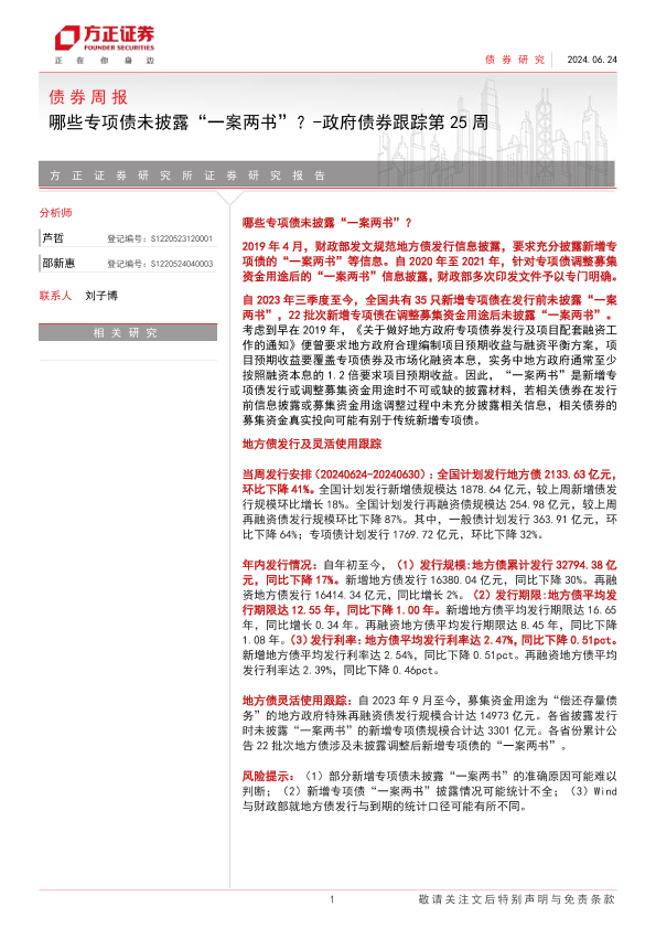 【方正证券】【20240624】政府债券跟踪:哪些专项债未披露“一案两书”?-15页