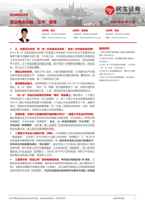 【民生证券】【20240627】政治局会议点评:政治局会议的“三中”信号-12页