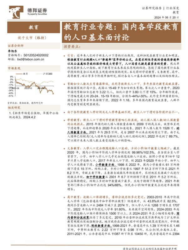 【德邦证券】【20240620】教育行业专题:国内各学段教育的人口基本面讨论-37页