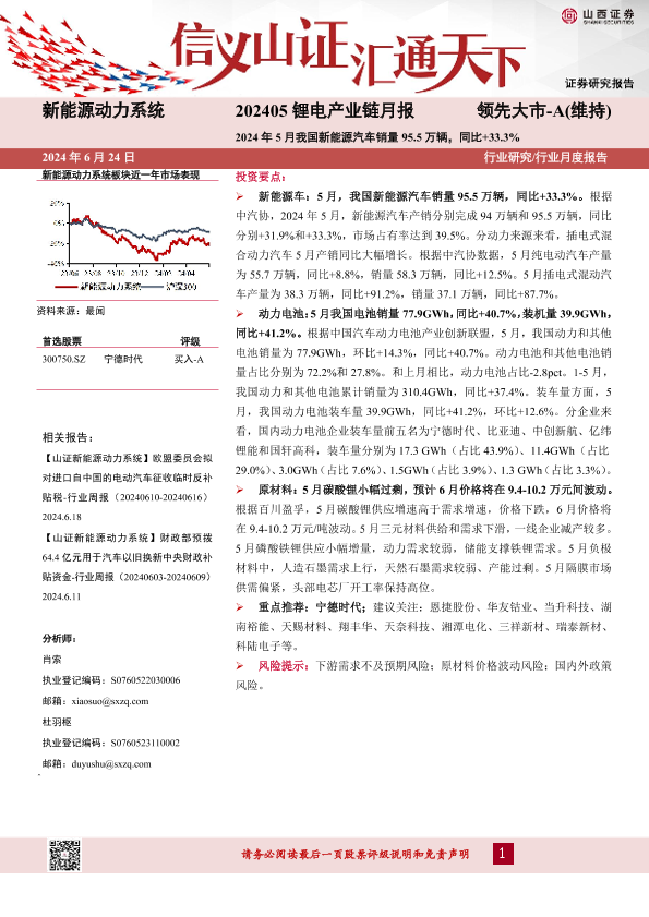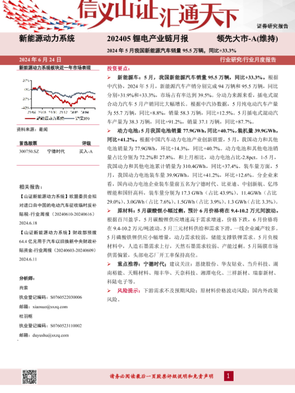 【山西证券】【20240624】新能源动力系统行业202405锂电产业链月报-14页