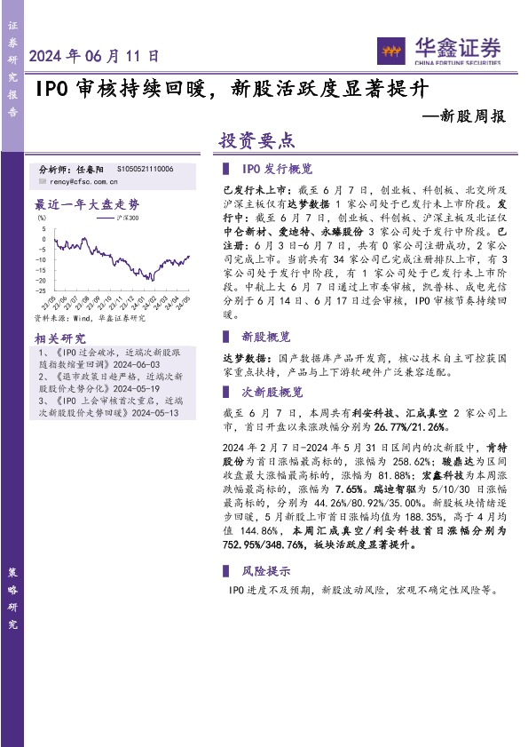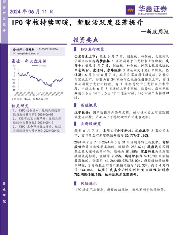IPO审核 市场分析 新股活跃度 行业动态 证券研究