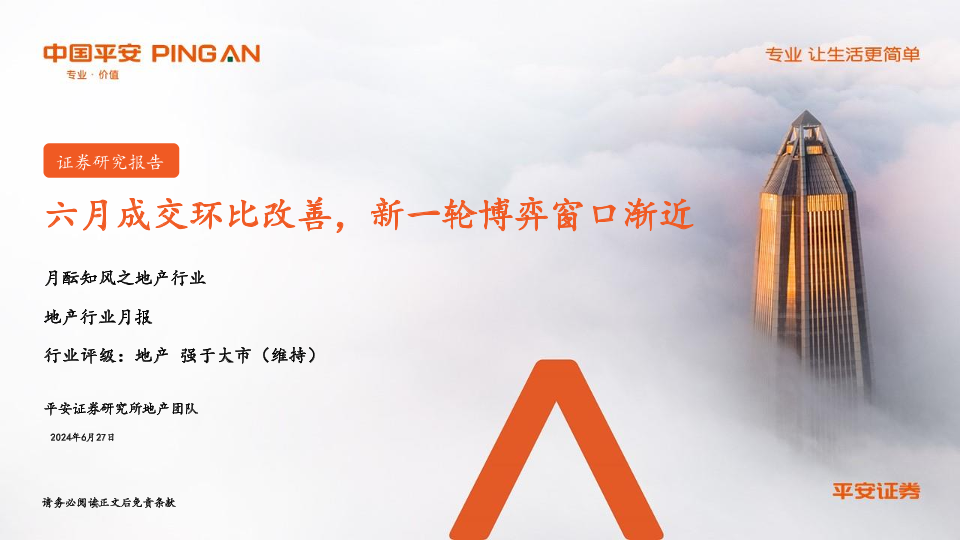 【平安证券】【20240627】月酝知风之地产行业:六月成交环比改善,新一轮博弈窗口渐近-19页