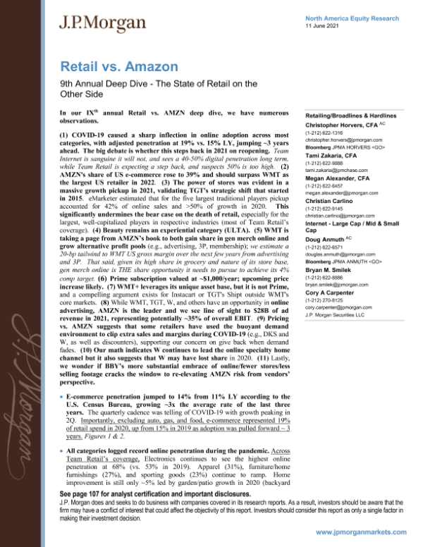 【J.P. Morgan】【20210611】零售vs亚马逊:第9次年度深度研究——另一边的零售业状况-111页
