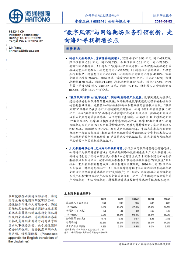 【海通国际】【20240531】永信至诚-688244.SH-公司年报点评:“数字风洞”与网络靶场业务引领创新,走向海外寻找新增长点-11页
