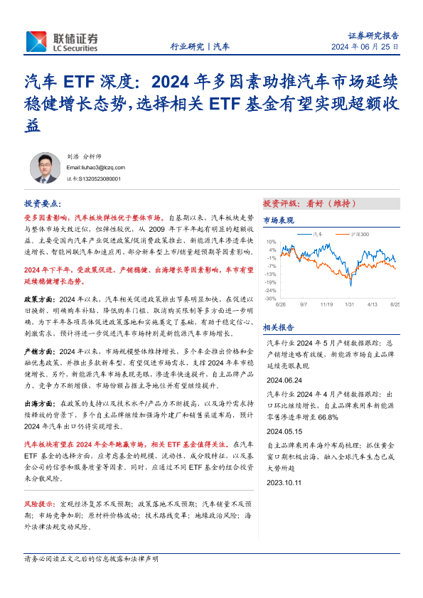 【联储证券】【20240625】汽车行业ETF深度:2024年多因素助推汽车市场延续稳健增长态势,选择相关ETF基金有望实现超额收益-22页