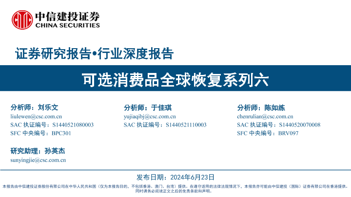 【中信建投证券】【20240623】消费行业:可选消费品全球恢复系列六-157页