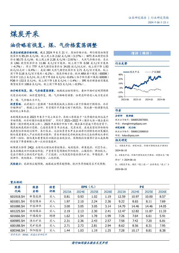 【国盛证券】【20240623】煤炭开采行业研究简报:油价略有恢复,煤、气价格震荡调整-12页