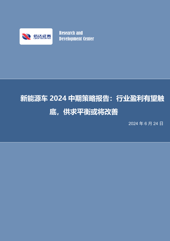 【信达证券】【20240624】电力设备与新能源行业新能源车2024中期策略报告:行业盈利有望触底,供求平衡或将改善-32页