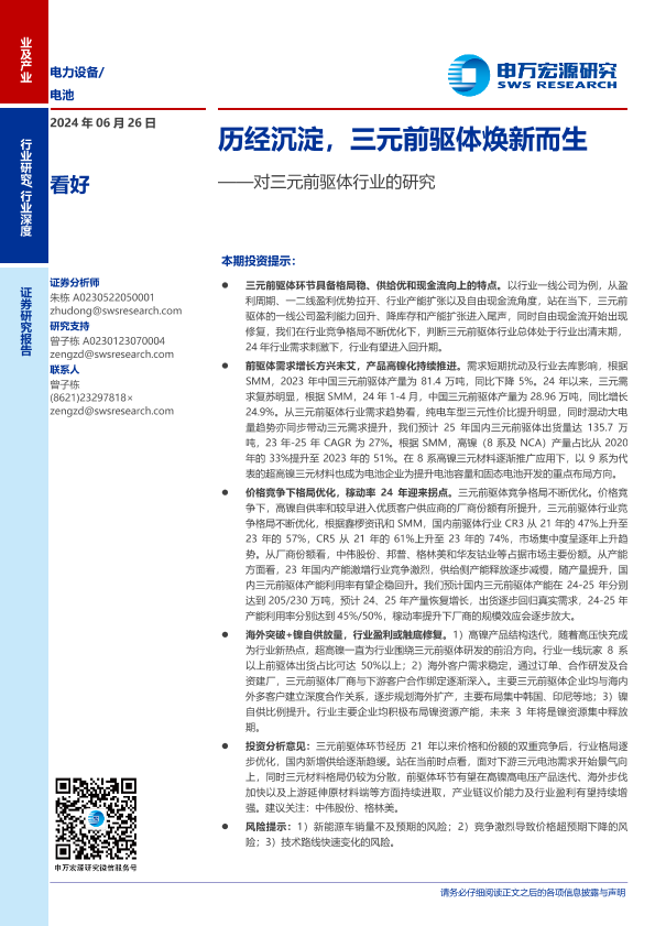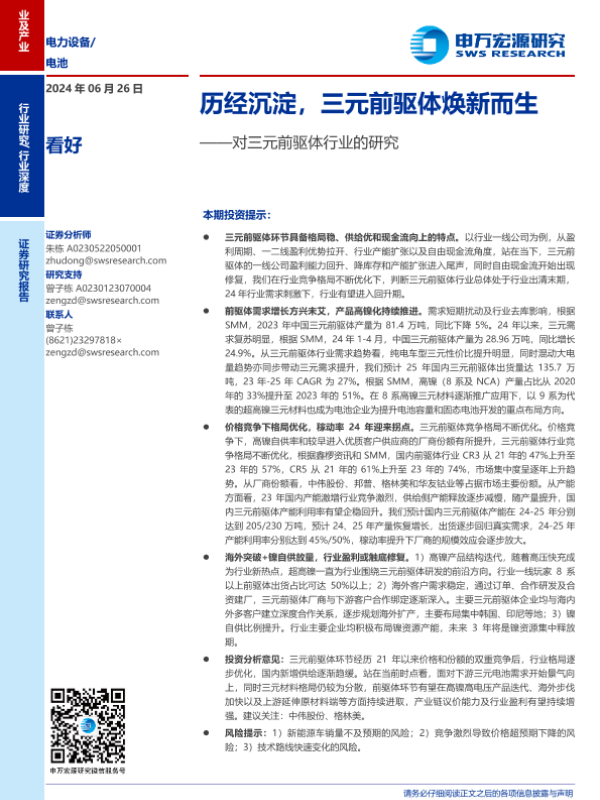 【申万宏源】【20240626】电力设备行业对三元前驱体行业的研究:历经沉淀,三元前驱体焕新而生-35页