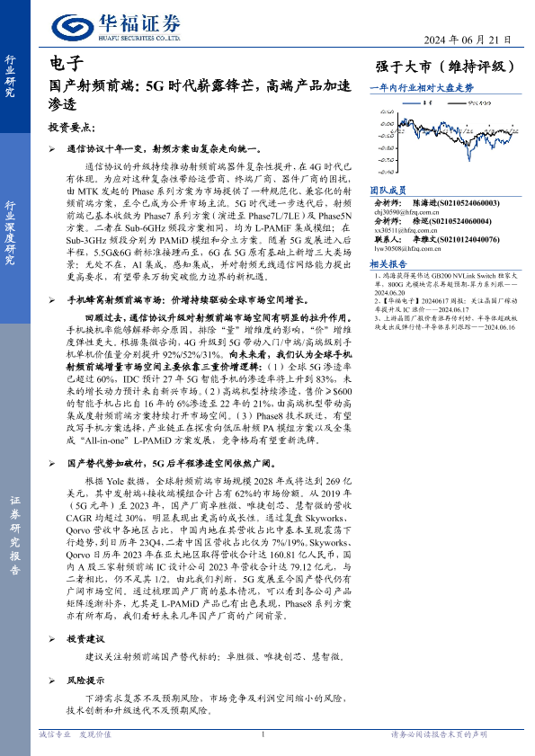 【华福证券】【20240621】电子行业国产射频前端:5G时代崭露锋芒,高端产品加速渗透-24页