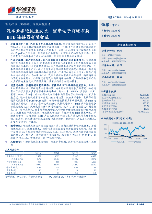 【华创证券】【20240625】电连技术(300679)深度研究报告:汽车业务迎快速成长,消费电子前瞻布局BTB连接器有望受益-34页