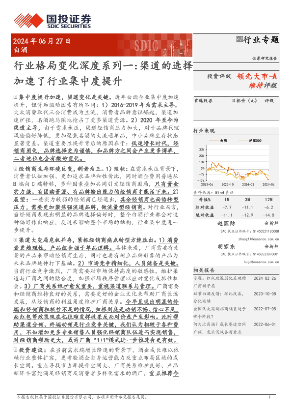 【国投证券】【20240627】白酒行业格局变化深度系列一:渠道的选择加速了行业集中度提升-16页
