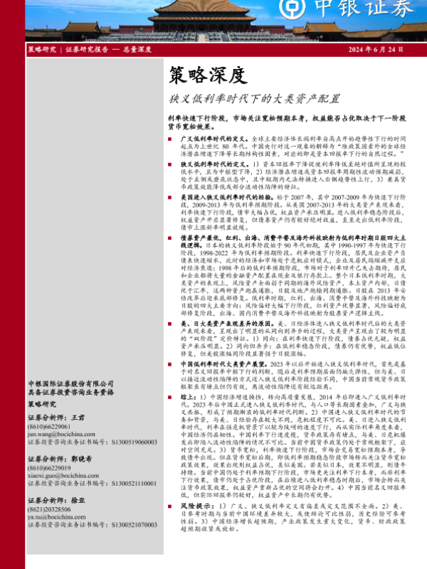 【中银证券】【20240624】策略深度:狭义低利率时代下的大类资产配置-25页