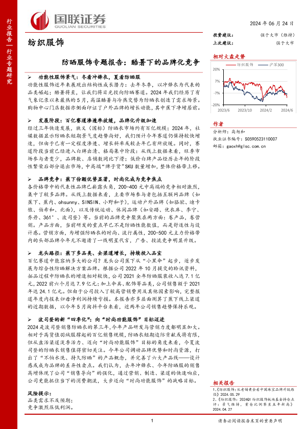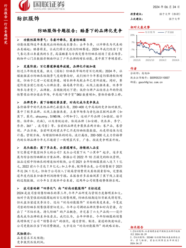 【国联证券】【20240624】纺织服饰行业防晒服饰专题报告:酷暑下的品牌化竞争-15页