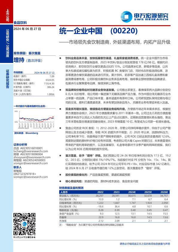 【申万宏源】【20240627】统一企业中国(00220.HK)市场领先食饮制造商,外延渠道布局,内拓产品升级-31页