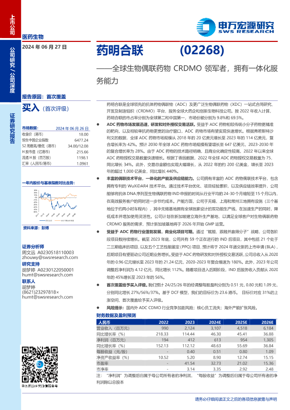 【申万宏源】【20240627】药明合联(02268.HK)全球生物偶联药物CRDMO领军者,拥有一体化服务能力-31页