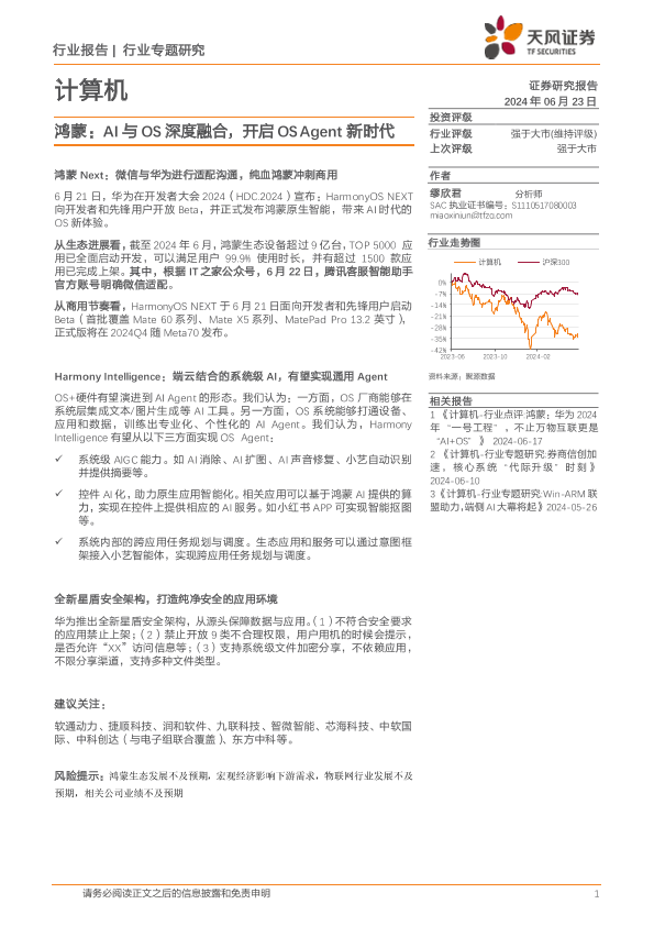 【天风证券】【20240623】计算机行业专题研究:鸿蒙,AI与OS深度融合,开启OSAgent新时代-10页