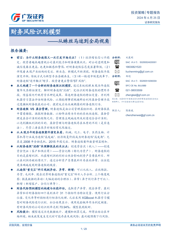 【广发证券】【20240625】财务风险识别模型:从蛛丝马迹到全局视角-23页