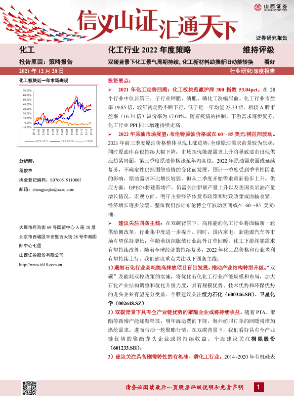 【山西证券】【20211220】化工行业2022年度策略:双碳背景下化工景气周期持续,化工新材料助推新旧动能转换-36页