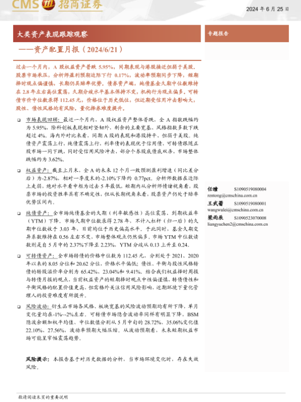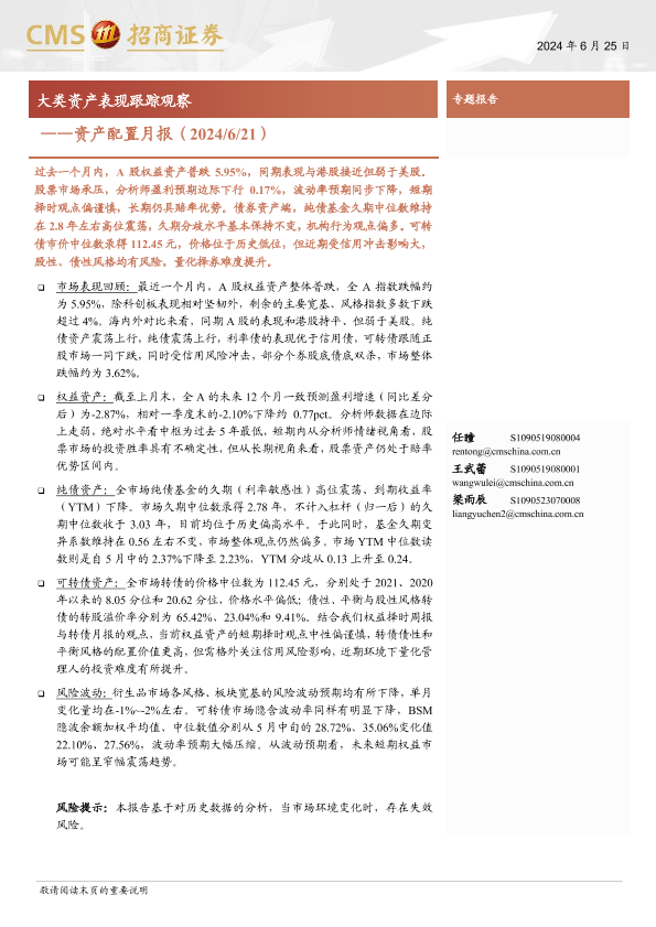 【海通证券】【20240625】资产配置月报:大类资产表现跟踪观察-10页