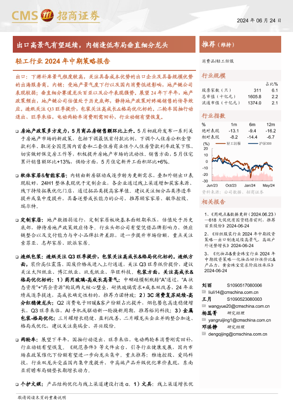 内销布局 出口企业 地产政策 成本优势 轻工行业