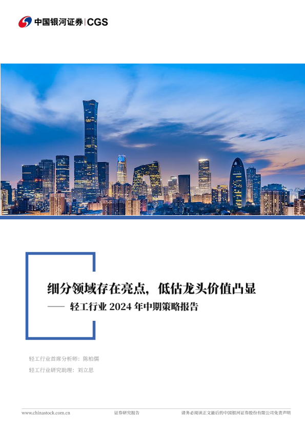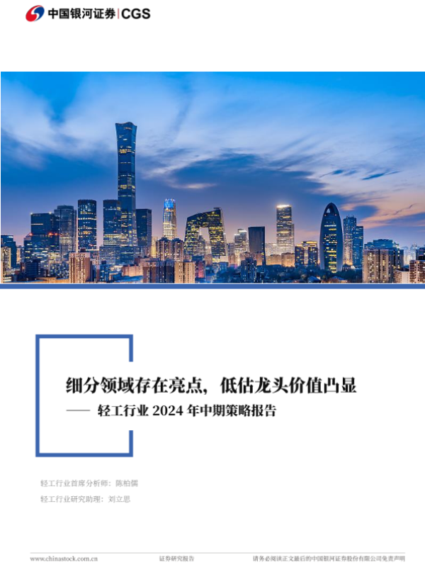 【银河证券】【20240622】轻工行业2024年中期策略报告:细分领域存在亮点,低估龙头价值凸显-40页