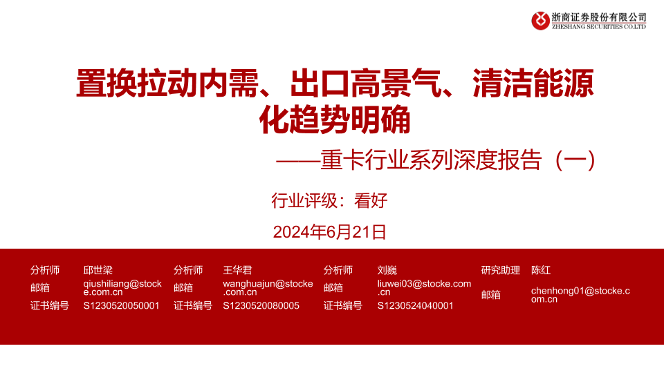 【浙商证券】【20240621】重卡行业系列深度报告(一):置换拉动内需、出口高景气、清洁能源化趋势明确-49页