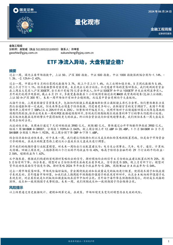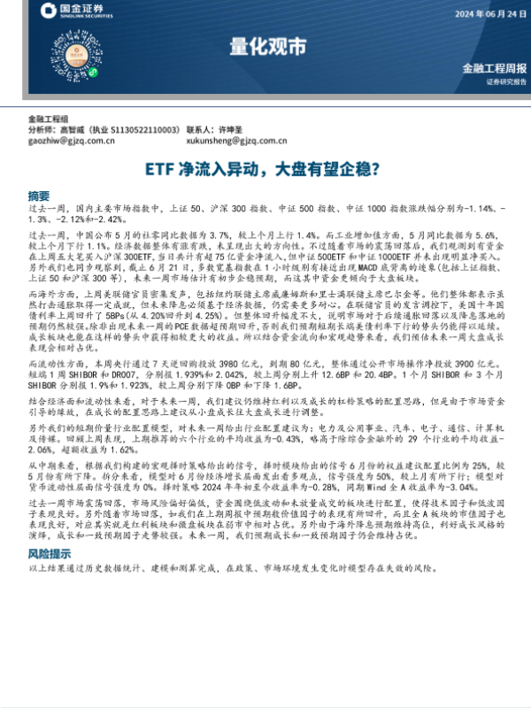 【国金证券】【20240624】量化观市:ETF净流入异动,大盘有望企稳?-14页