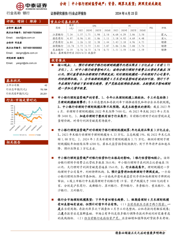 【中泰证券】【20240623】银行业分析|中小银行理财监管趋严:背景、测算及展望;牌照发放或提速-12页