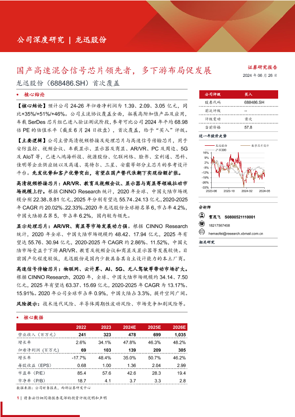 【西部证券】【20240626】龙迅股份(688486)首次覆盖:国产高速混合信号芯片领先者,多下游布局促发展-27页