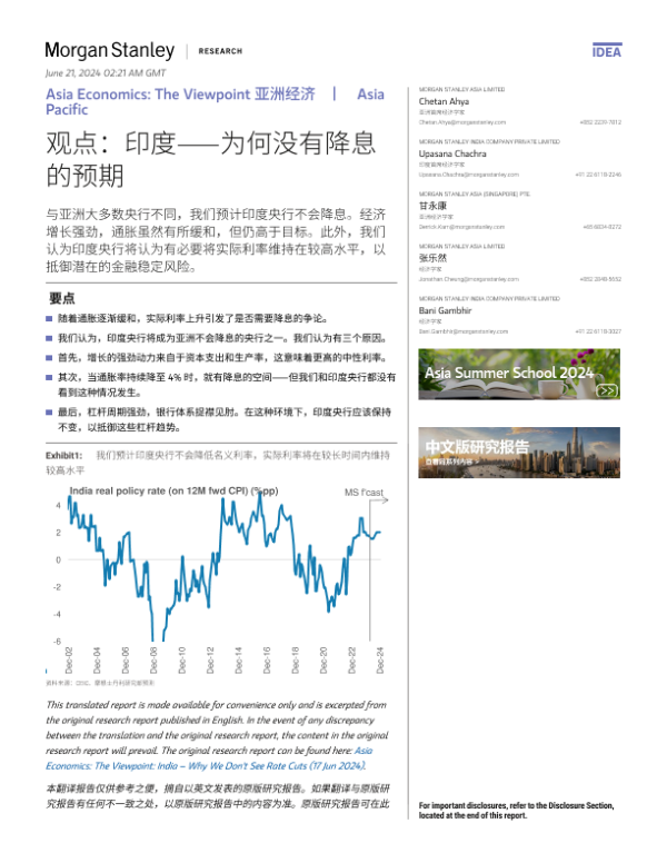 【Morgan Stanley】【20240617】亚洲经济 观点:印度——为何没有降息的预期-11页