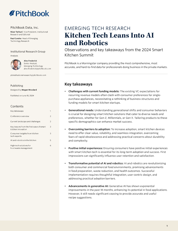 【PitchBook Data】【20240618】PitchBook分析师注:厨房技术向人工智能和机器人倾斜-8页
