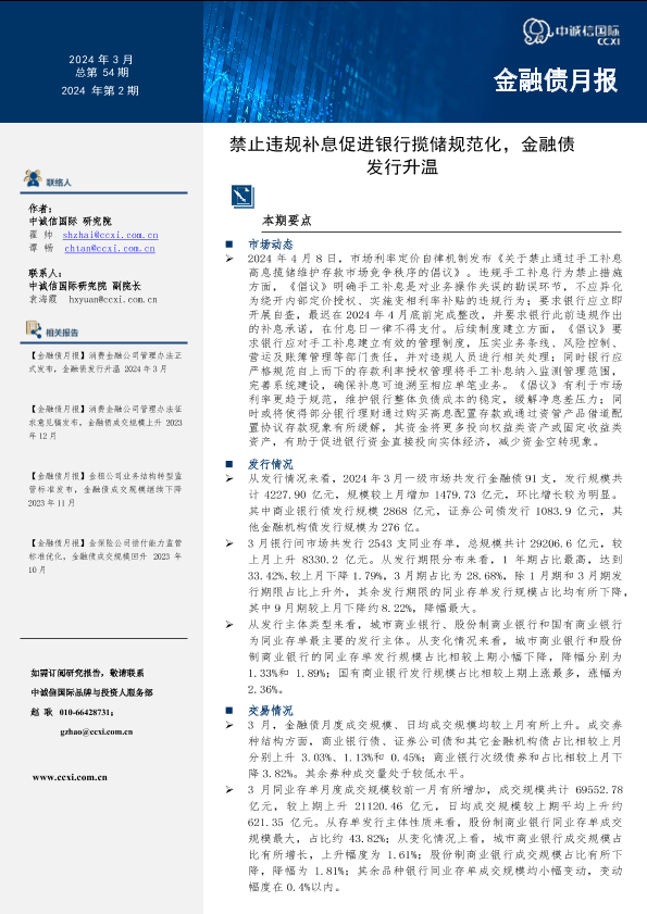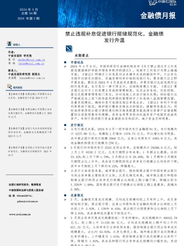 【中诚信国际】【20240408】【金融债月报】禁止违规补息促进银行揽储规范化,金融债发行升温2024年4月-10页