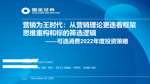 【国金证券】【20211220】可选消费行业2022年度投资策略:营销为王时代,从营销理论更迭看框架思维重构和标的筛选逻辑-42页
