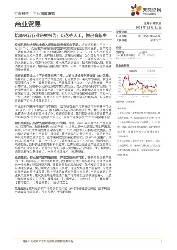 培育钻石 天风证券 市场分析 行业研究 商业贸易