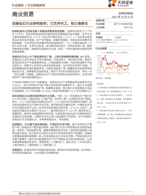 【天风证券】【20211221】商业贸易行业深度研究:培育钻石行业研究报告,巧艺夺天工,悦己育新生-46页