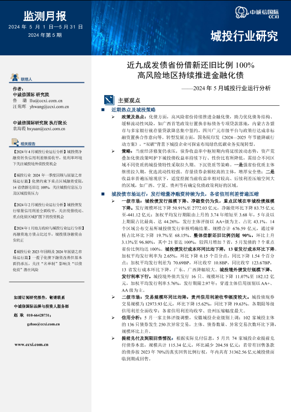 【中诚信国际】【20240501】近九成发债省份借新还旧比例100%,高风险地区持续推进金融化债-15页
