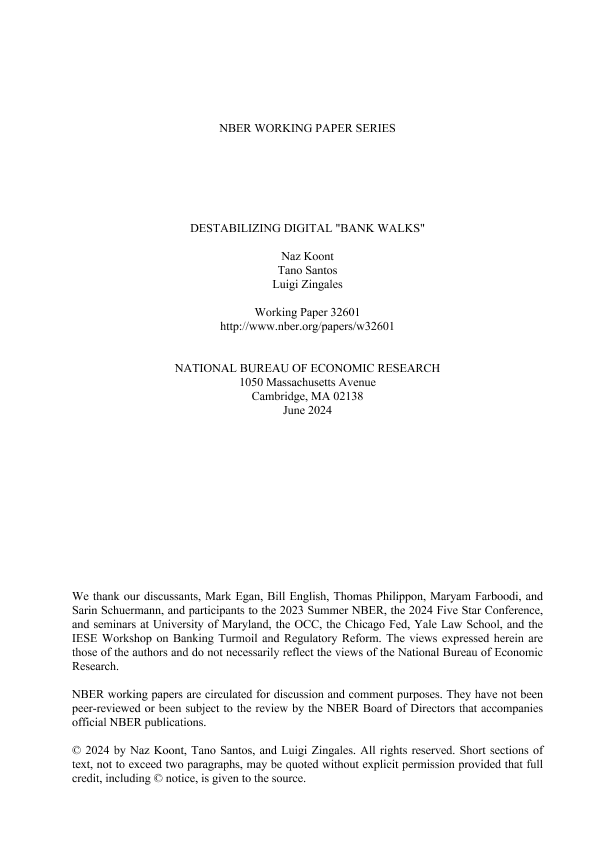 【National Bureau of Economic Research (NBER)】【20240601】Destabilizing Digital 'Bank Walks'-53页