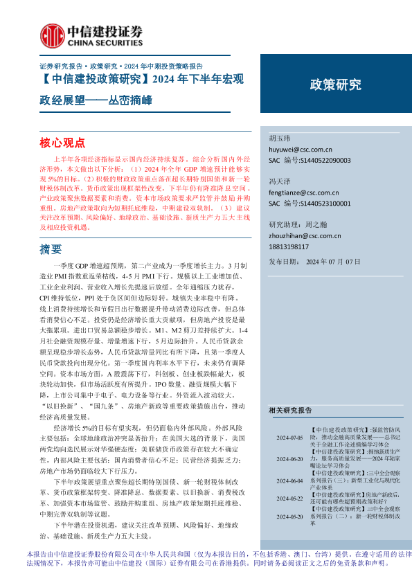 【中信建投证券】【20240707】2024年下半年宏观政经展望:丛峦摘峰-36页