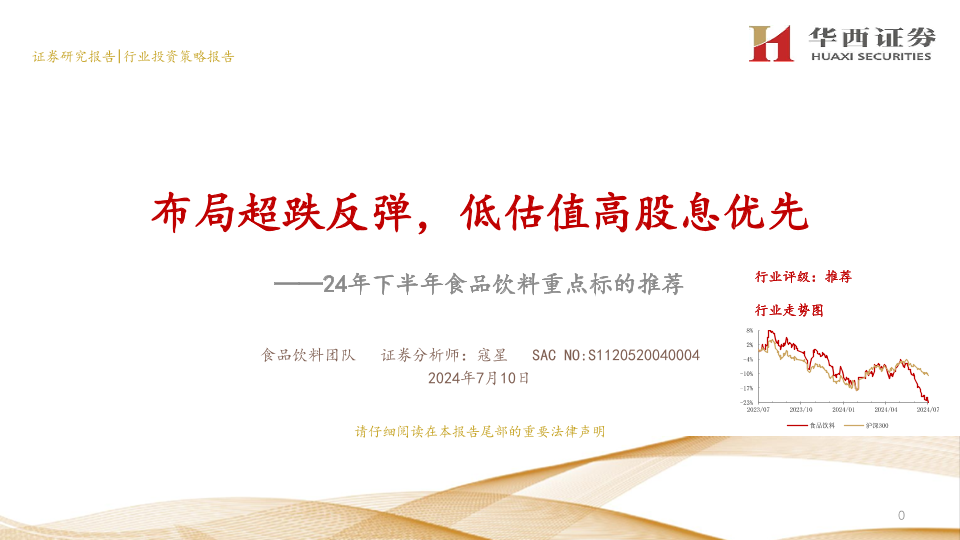 【华西证券】【20240710】24年下半年食品饮料行业重点标的推荐:布局超跌反弹,低估值高股息优先-38页