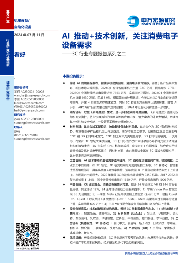 【申万宏源】【20240711】3C行业专题报告系列之二:AI推动技术创新,关注消费电子设备需求-35页