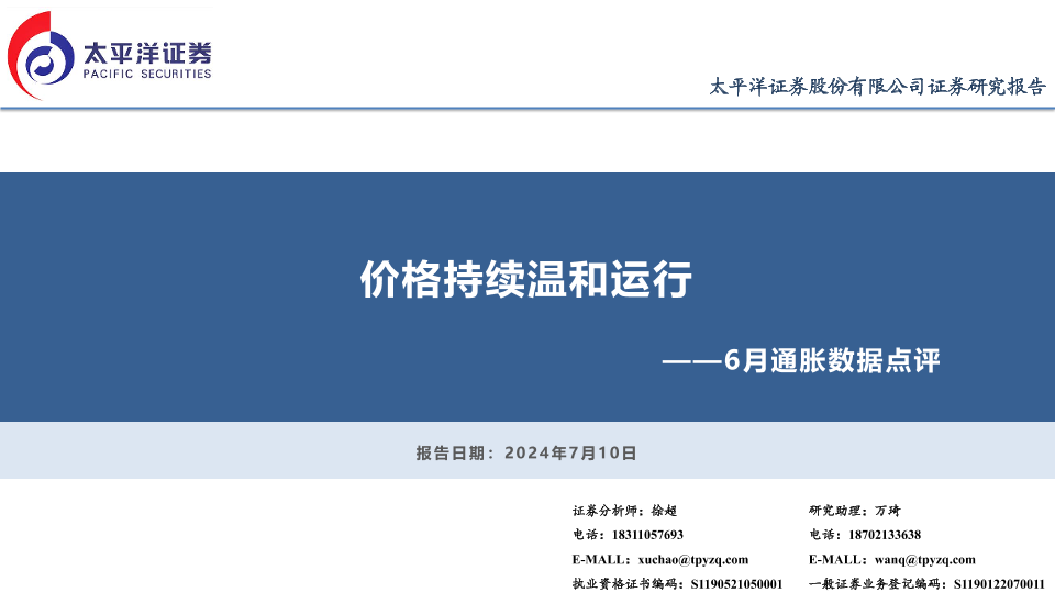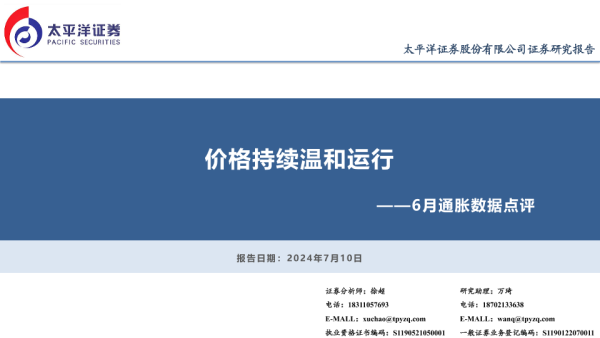 【太平洋证券】【20240710】6月通胀数据点评:价格持续温和运行-12页