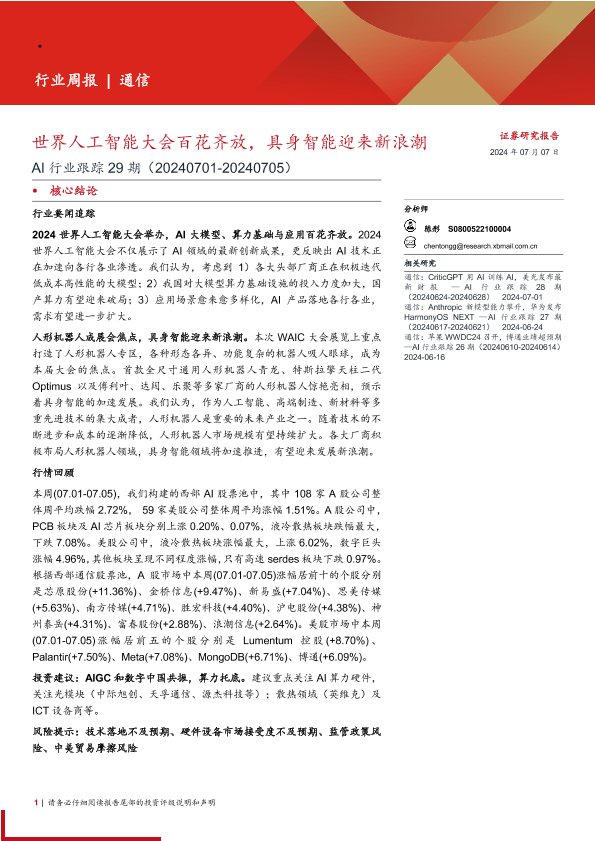 【西部证券】【20240707】AI行业跟踪29期:世界人工智能大会百花齐放,具身智能迎来新浪潮-13页