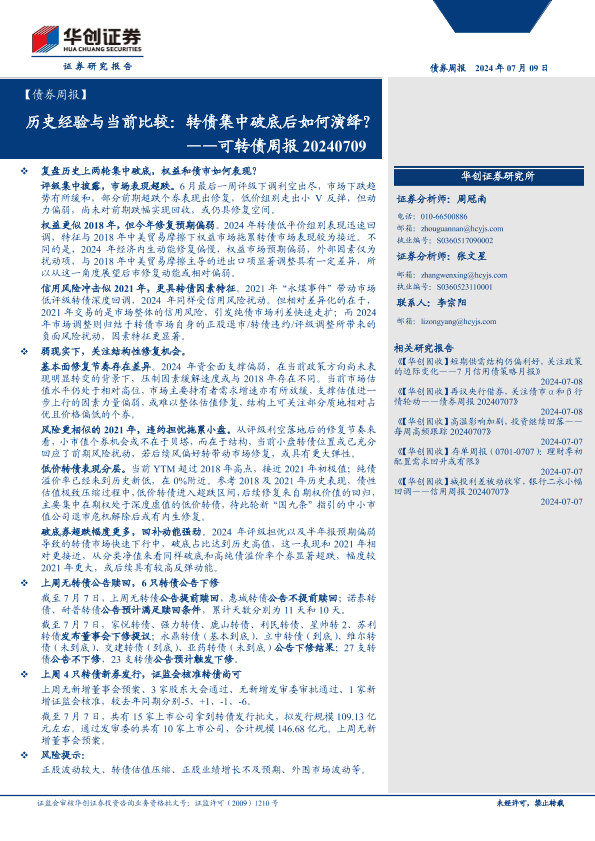 【华创证券】【20240709】可转债:历史经验与当前比较,转债集中破底后如何演绎?-20页