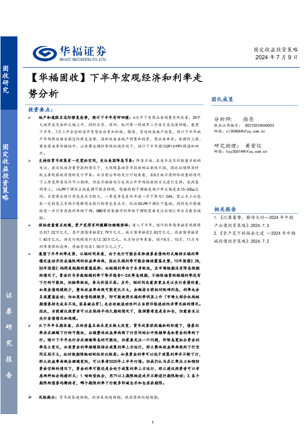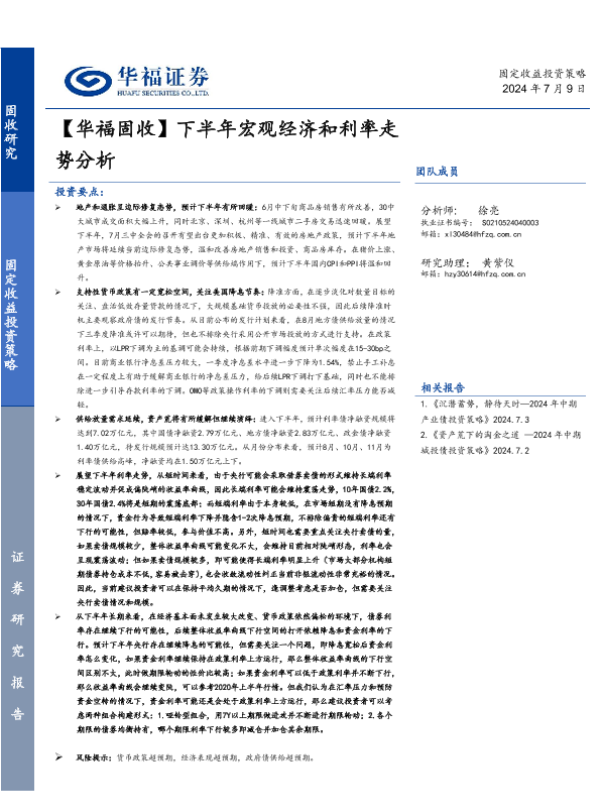 【华福证券】【20240709】【华福固收】下半年宏观经济和利率走势分析-21页