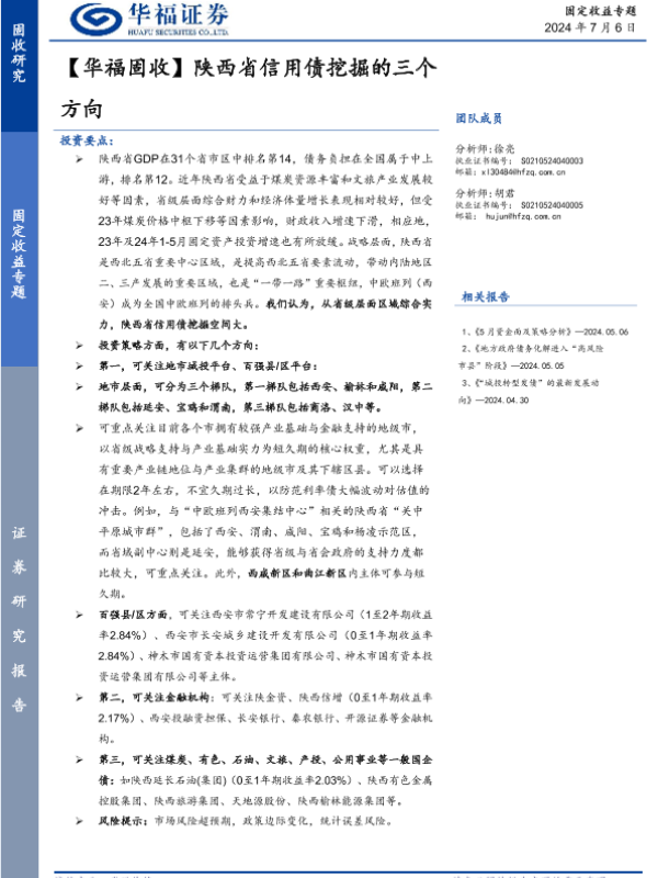 【华福证券】【20240706】【华福固收】陕西省信用债挖掘的三个方向-20页