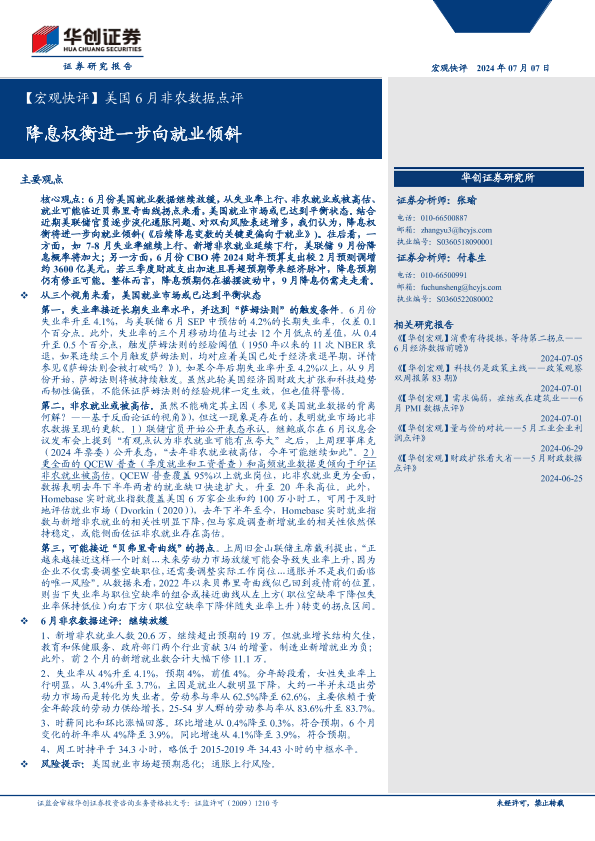 【华创证券】【20240707】美国6月非农数据点评:降息权衡进一步向就业倾斜-12页
