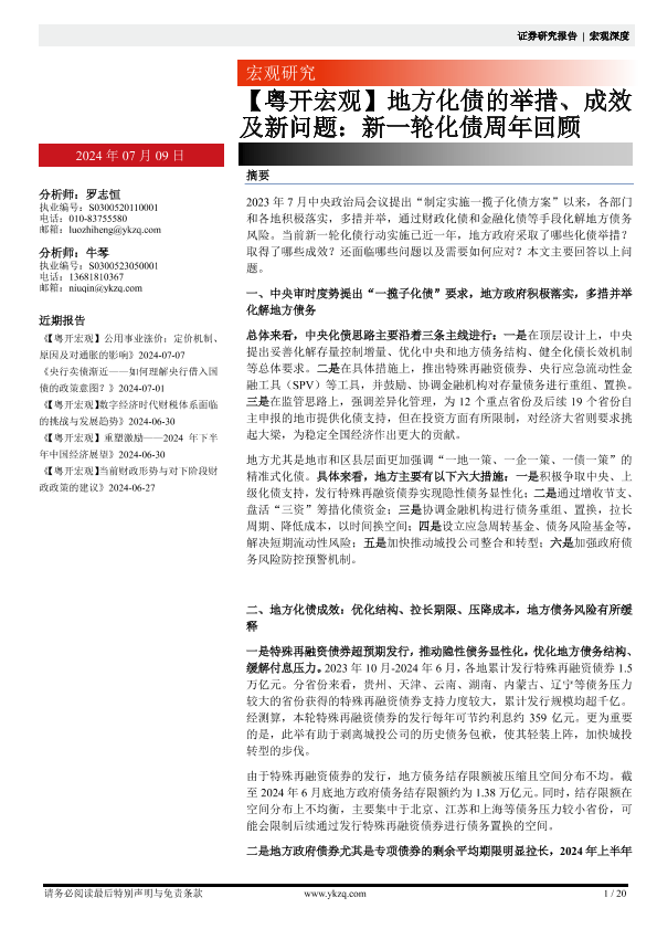 【粤开证券】【20240709】【粤开宏观】地方化债的举措、成效及新问题:新一轮化债周年回顾-20页