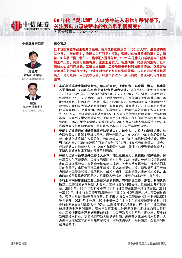 【中信证券】【20211222】60年代“婴儿潮”人口集中进入退休年龄背景下,关注劳动力短缺带来的收入和利润新变化-16页
