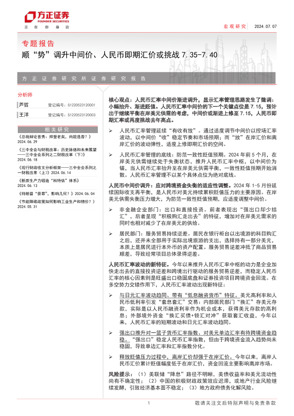 【方正证券】【20240707】专题报告:顺“势”调升中间价、人民币即期汇价或挑战7.35-7.40-14页